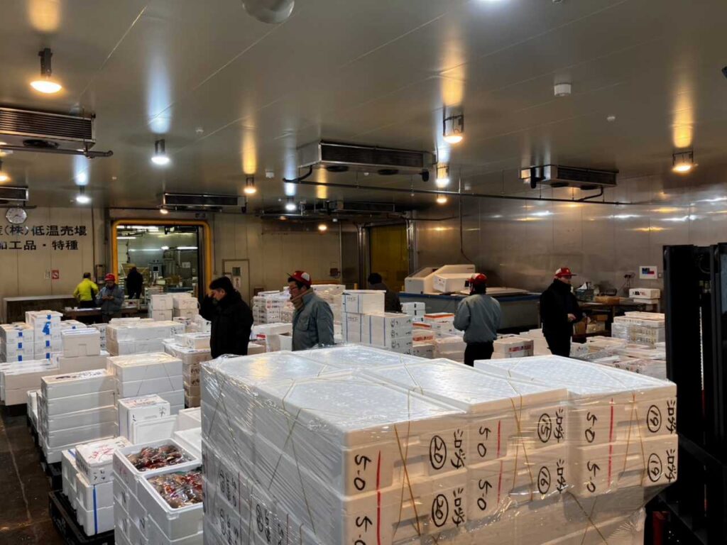 常洋水産㈱は卸売業者として入場し、適正価格と安定供給の公益使命を担い集荷と販売を行っています。